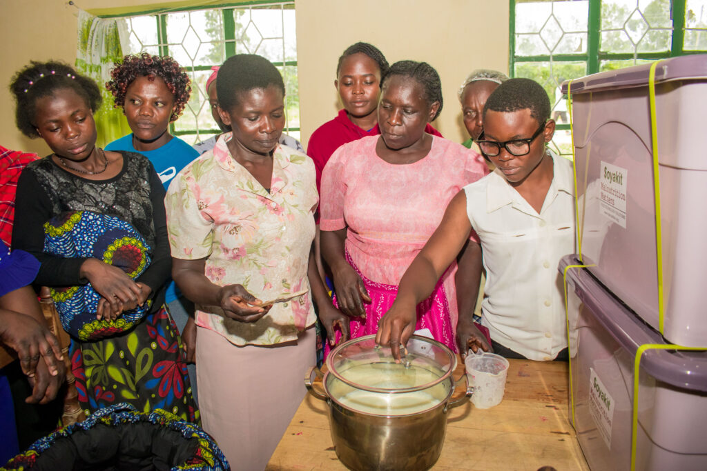 Malnutrition Matters provided the SoyaKit technology, a simple, affordable, and portable processing system that enables women to produce soya milk and other soy-based nutritious products at the community level. By training women in the use of the SoyaKit, the project equips